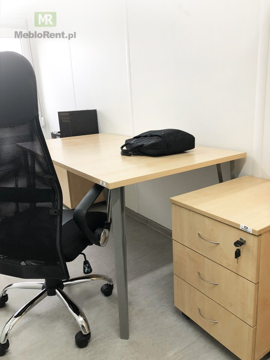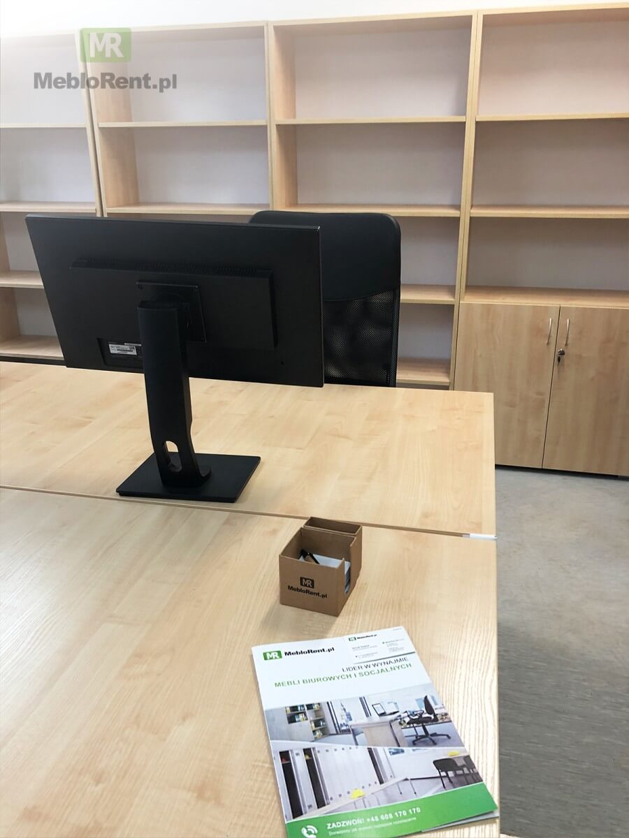 Na wynajem dostarczyliśmy stoły / biurka małe i duże, kontenerki pod biurko, regały otwarte, półotwarte i zamknięte, szafy ubraniowe, krzesła tapicerowane i obrotowe, wieszaki i kosze biurowe.